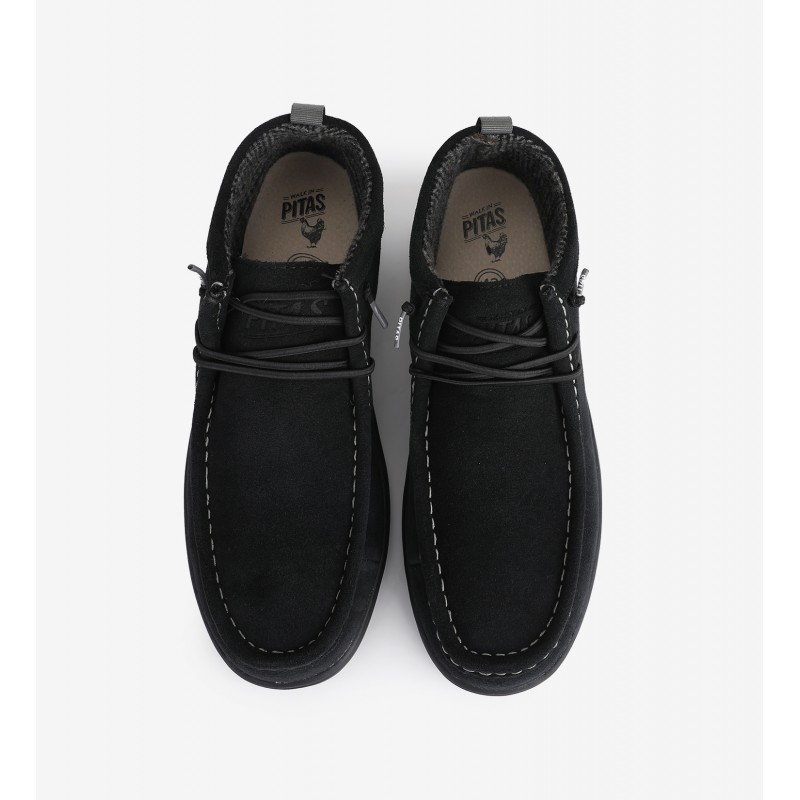 Scopri un nuovo livello di comfort e funzionalità con le scarpe TUG NEGRO di WALK IN PITAS. Queste eleganti scarpe in stile wallaby, realizzate in camoscio impermeabile di alta qualità nel colore nero elegante, sono la scelta perfetta per le giornate di pioggia e umidità. La profonda tonalità di nero aggiunge carattere e le rende adatte sia per outfit casual che più formali.